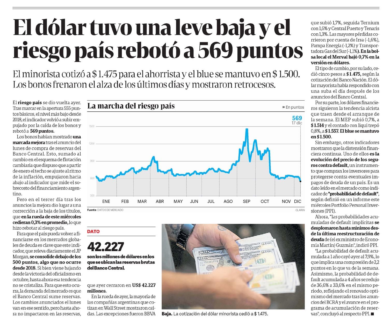 CLARÍN – El dólar tuvo una leve baja y el riesgo país rebotó a 569 puntos