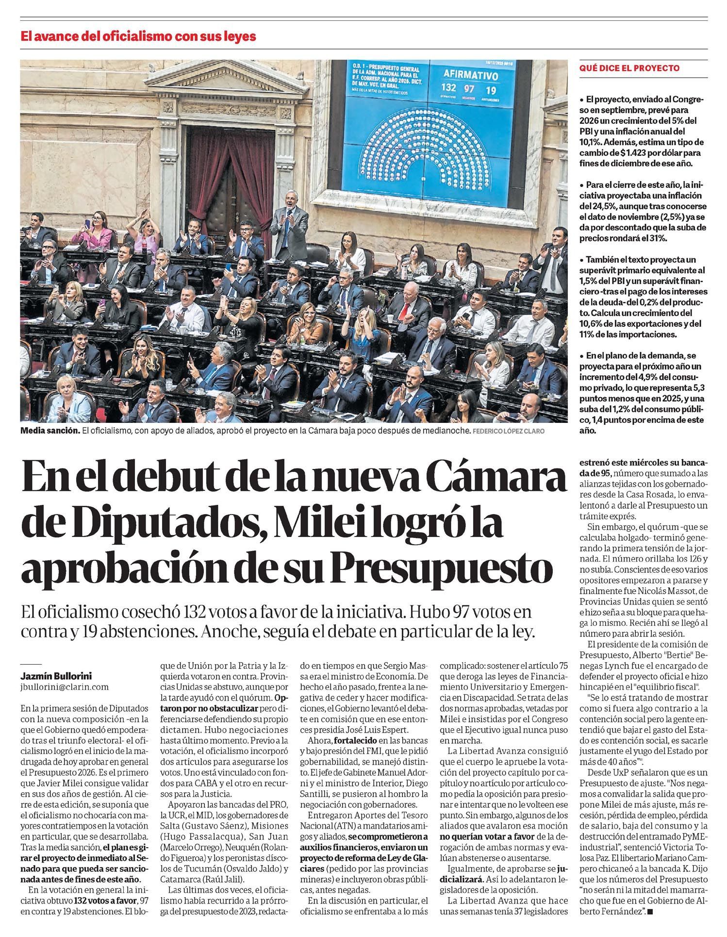 CLARÍN – En el debut de la nueva Cámara de Diputados, Milei logró la aprobación de su Presupuesto