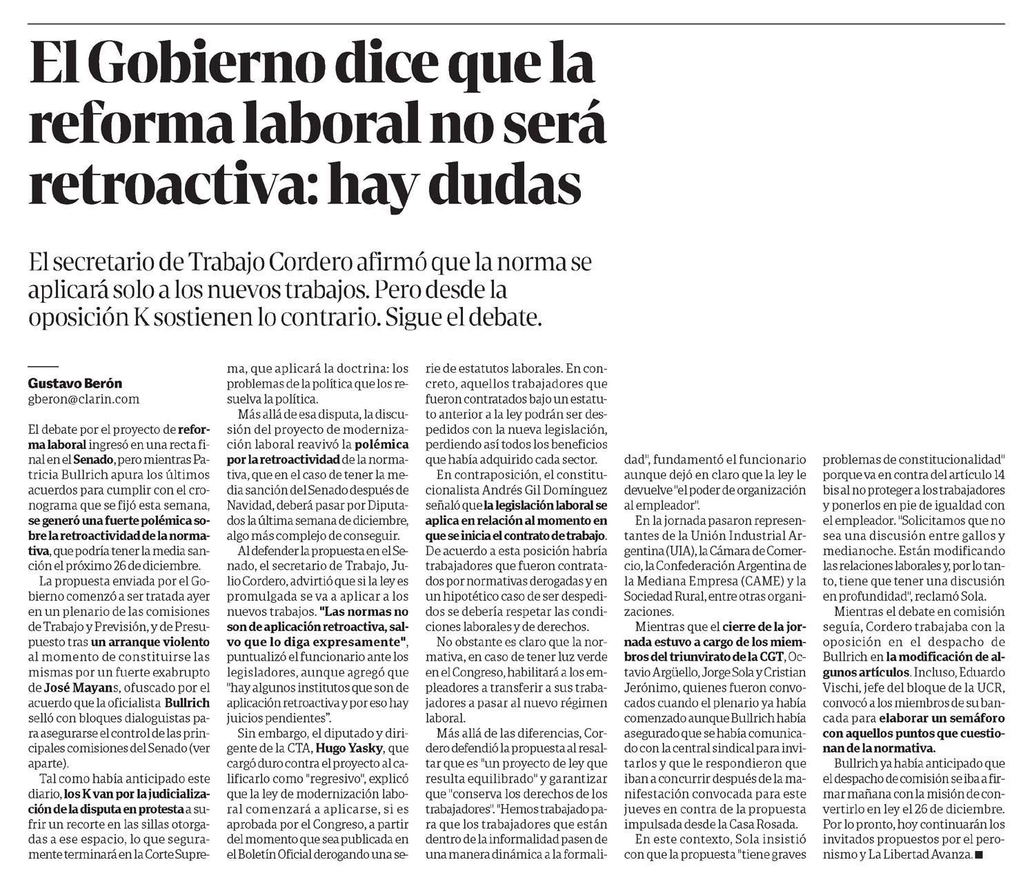 CLARÍN – El Gobierno dice que la reforma laboral no será retroactiva: hay dudas