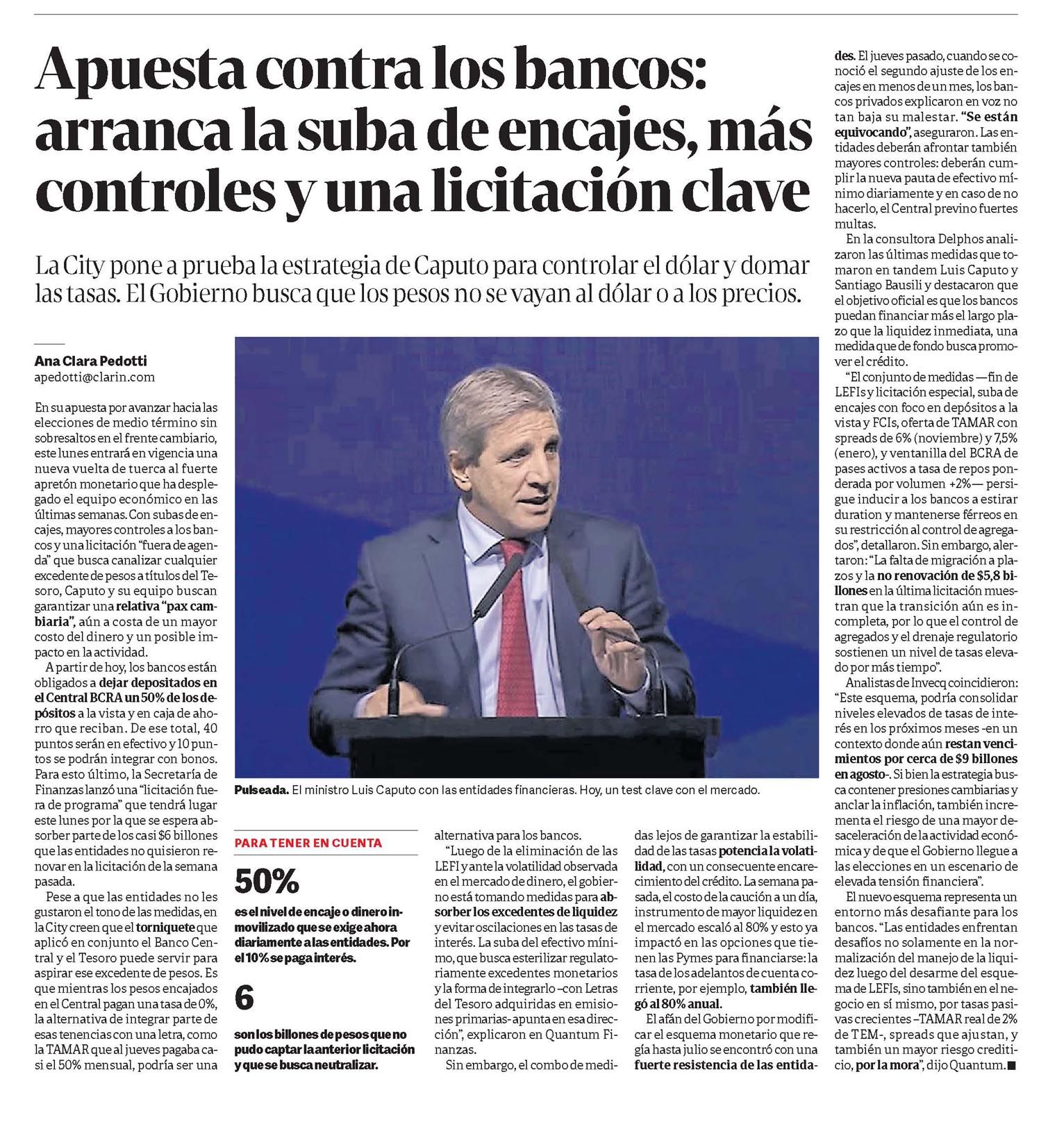 CLARÍN – Apuesta contra los bancos: arranca la suba de encajes, más controles y una licitación clave
