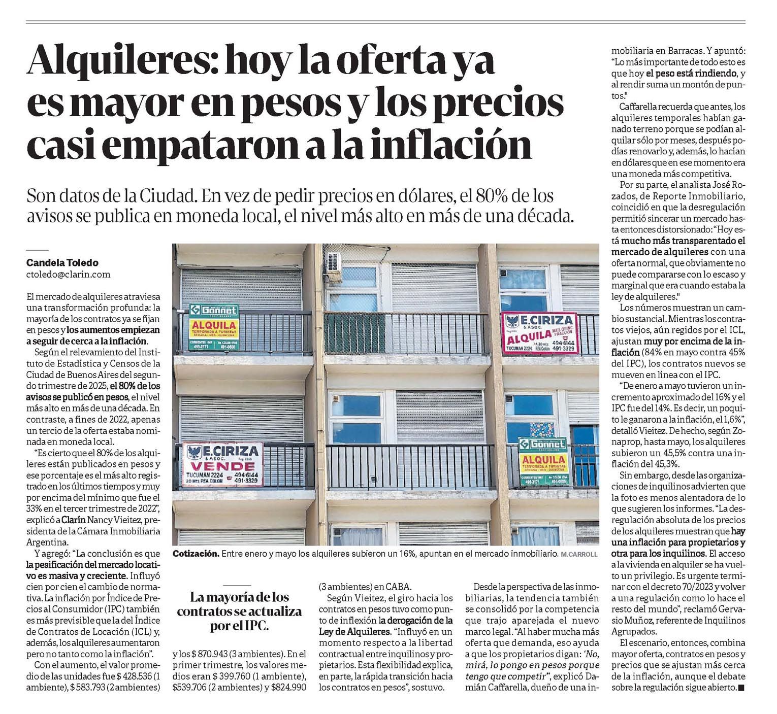 CLARÍN – Alquileres: hoy la oferta ya es mayor en pesos y los precios casi empataron a la inflación