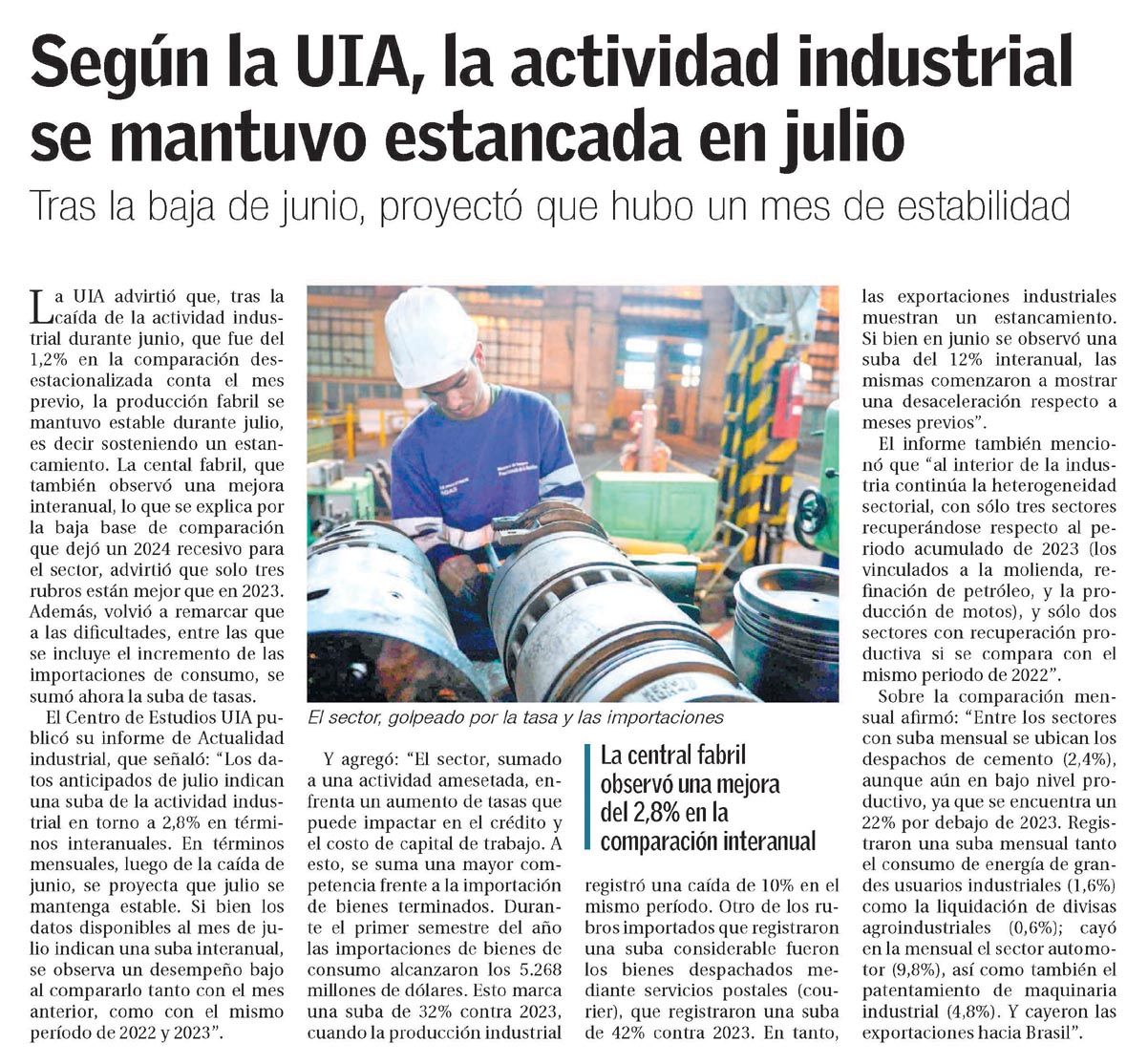 BAE – Según la UIA, la actividad industrial se mantuvo estancada en julio