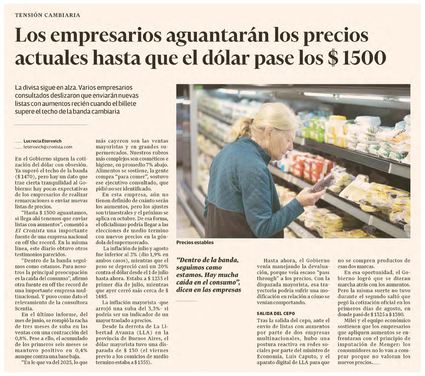 EL CRONISTA – Los empresarios aguantarán los precios actuales hasta que el dólar pase los $ 1500