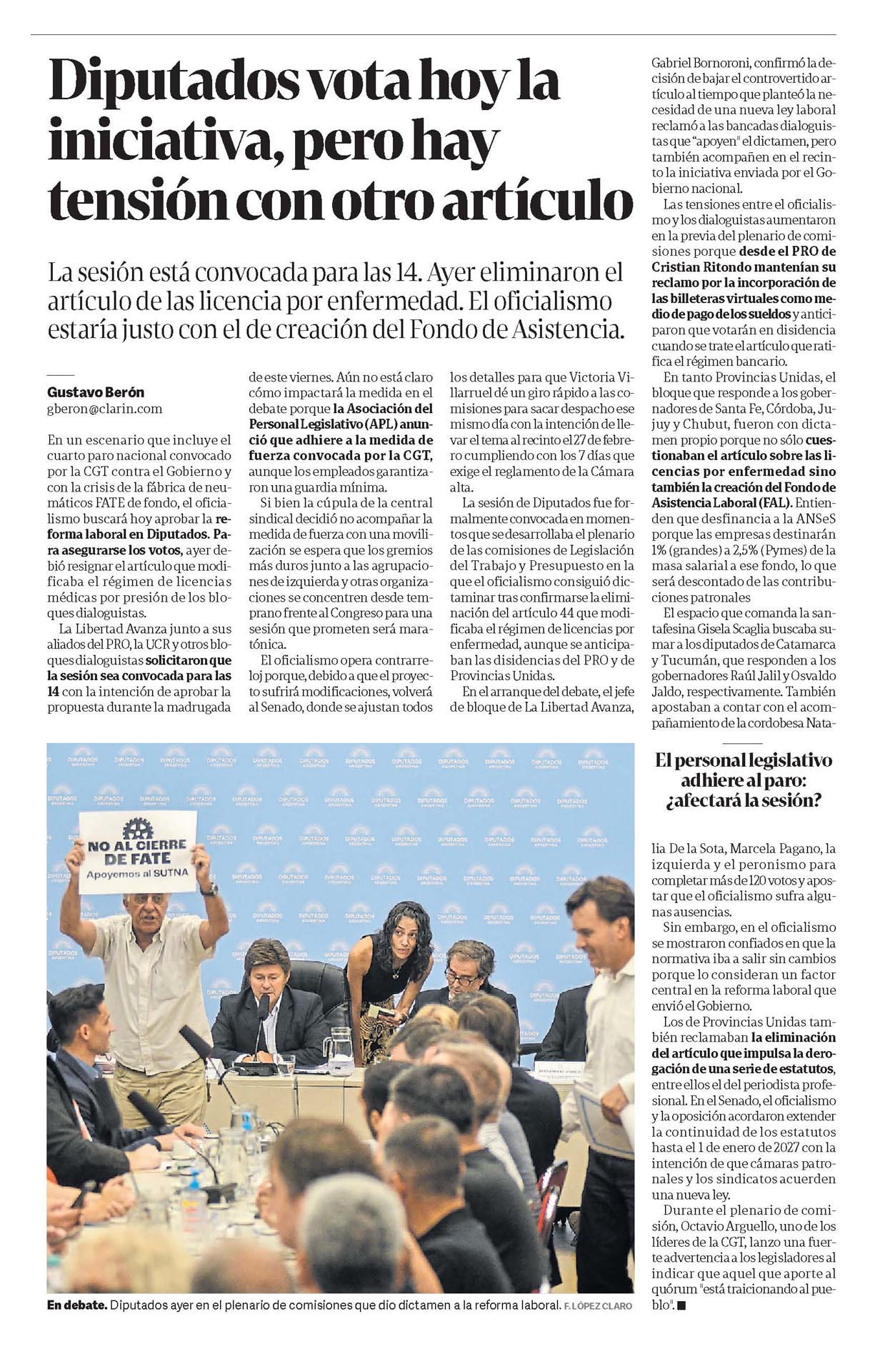CLARÍN – Diputados vota hoy la iniciativa, pero hay tensión con otro artículo
