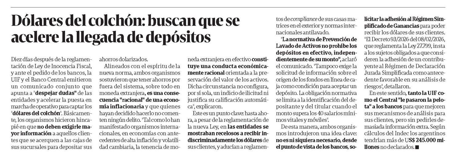 CLARÍN – Dólares del colchón: buscan que se acelere la llegada de depósitos