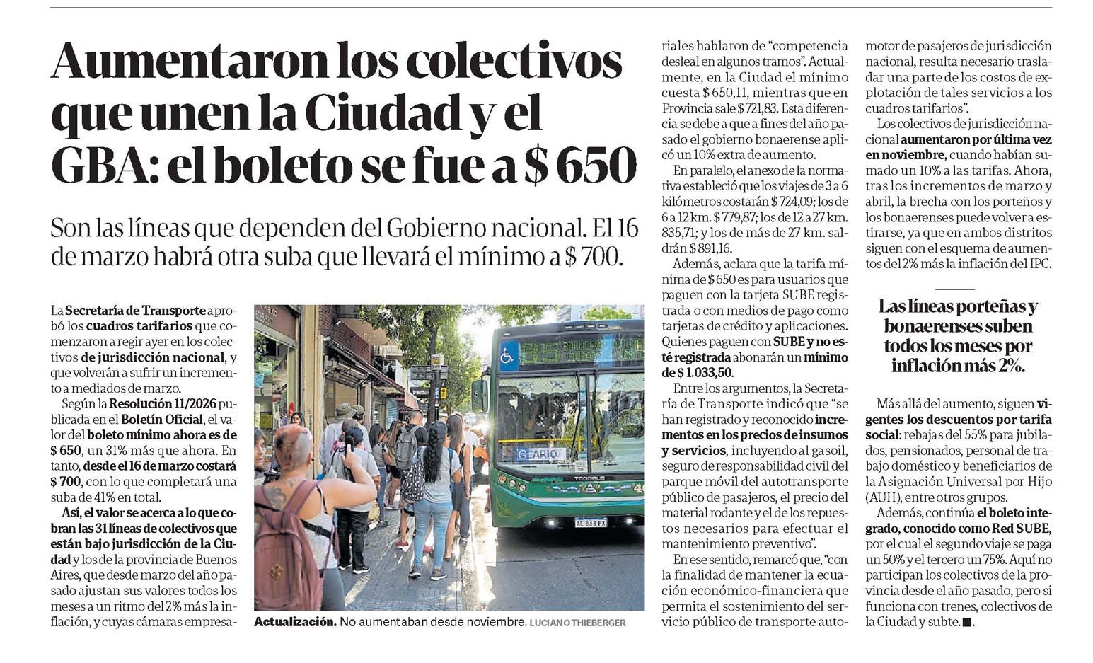 Son las líneas que dependen del Gobierno nacional. El 16 de marzo habrá otra suba que llevará el mínimo a $700.