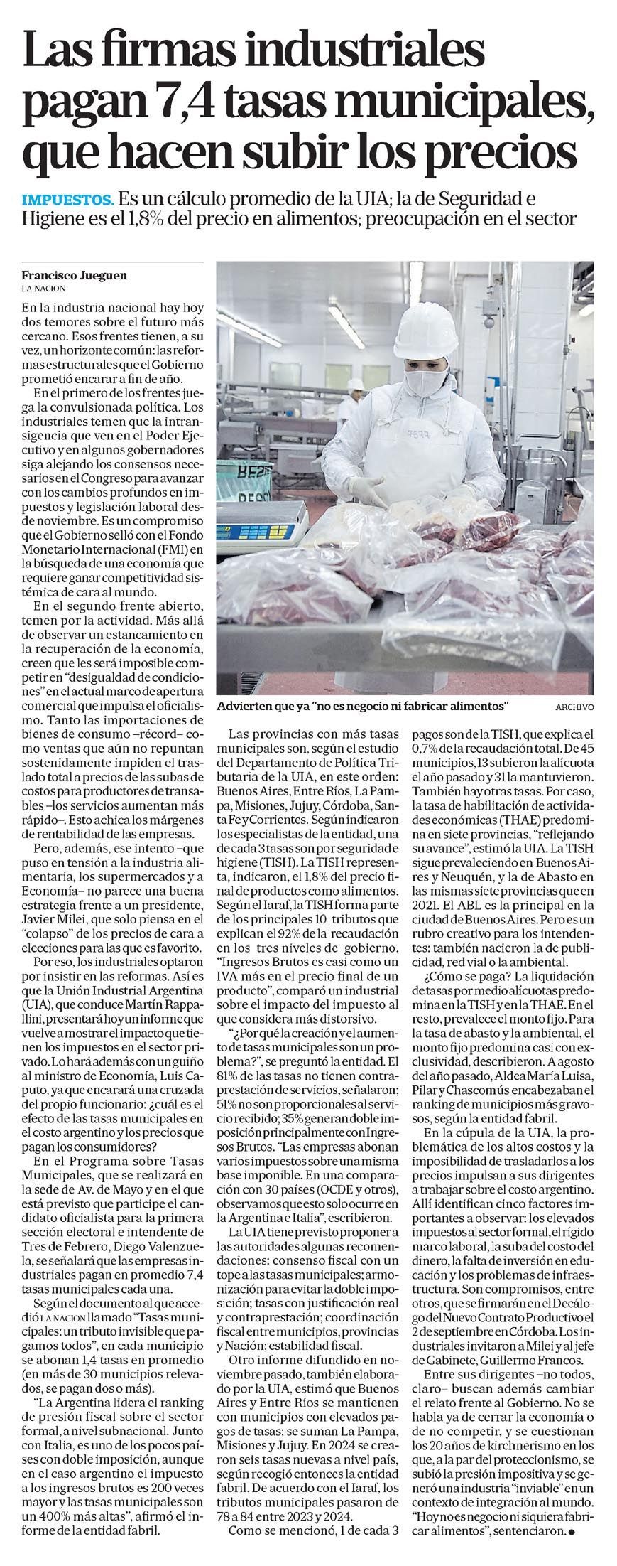 LA NACIÓN – Las firmas industriales pagan 7,4 tasas municipales, que hacen subir los precios