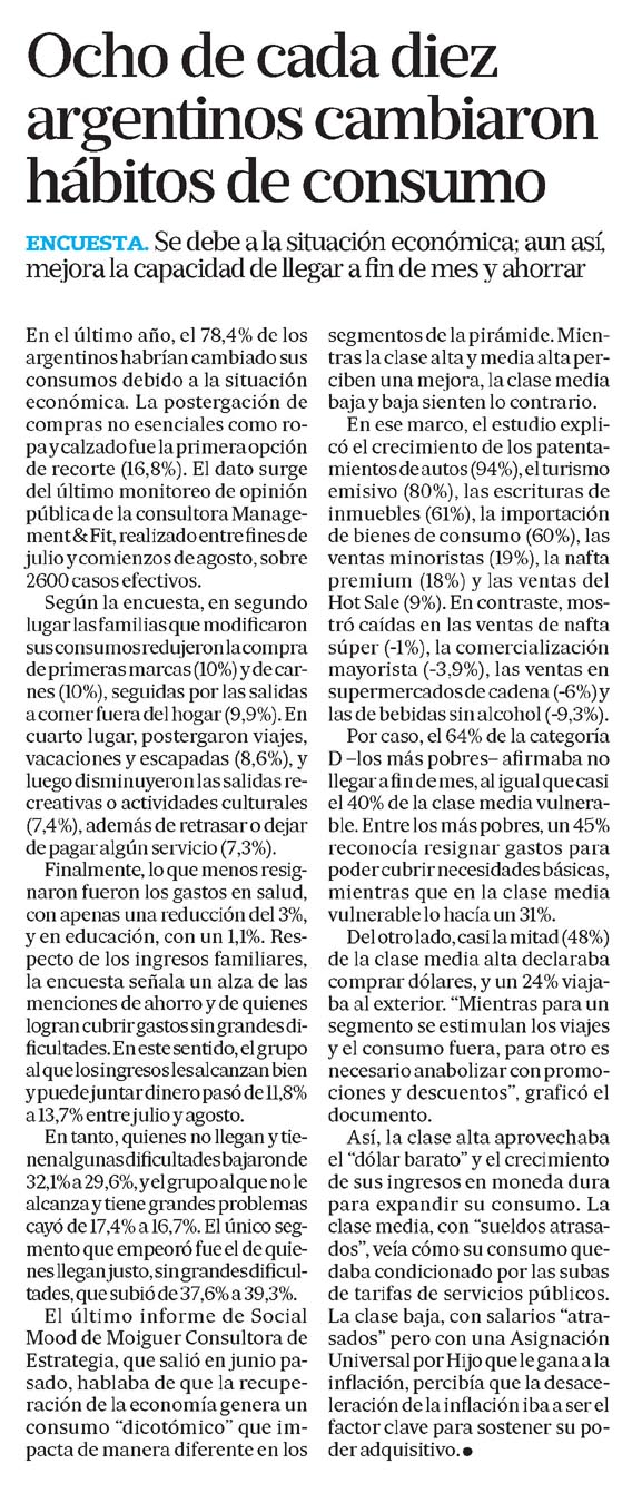 LA NACIÓN – Ocho de cada diez argentinos cambiaron hábitos de consumo