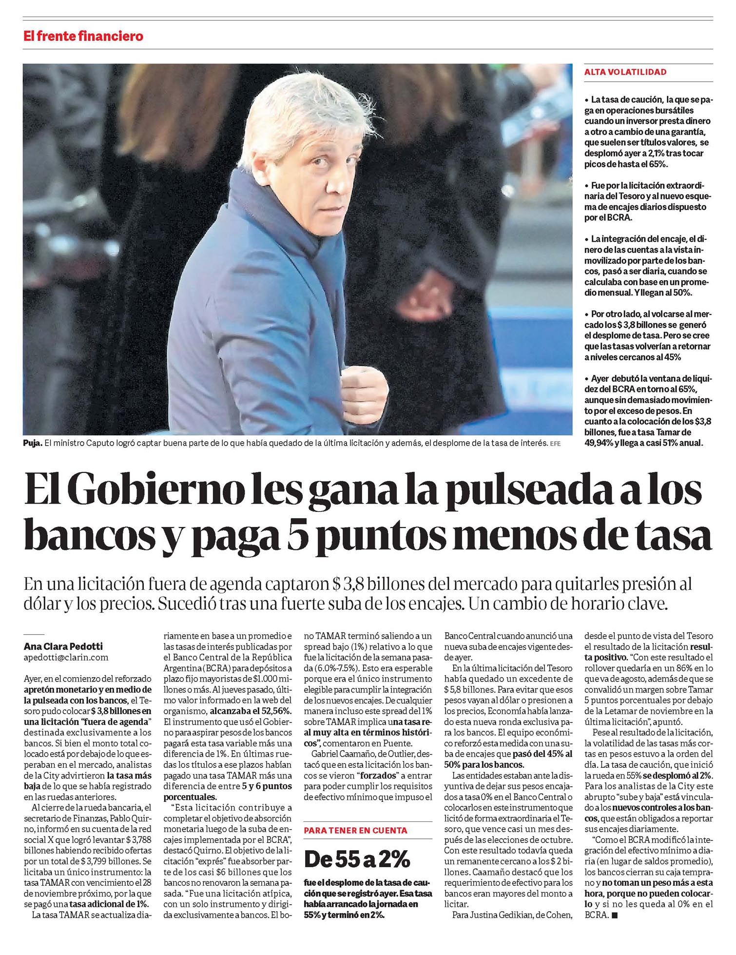CLARÍN – El Gobierno les gana a los bancos y paga 5 puntos menos de tasa