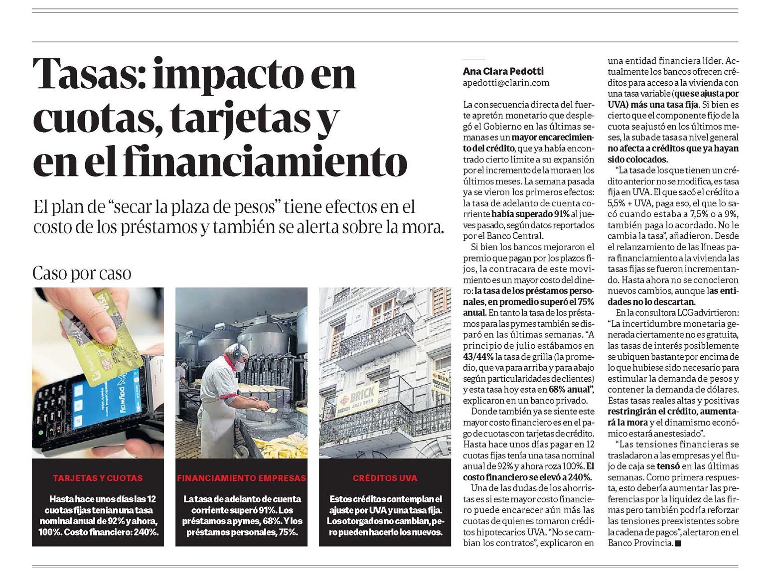CLARÍN – Tasas: impacto en cuotas, tarjetas y en el financiamiento