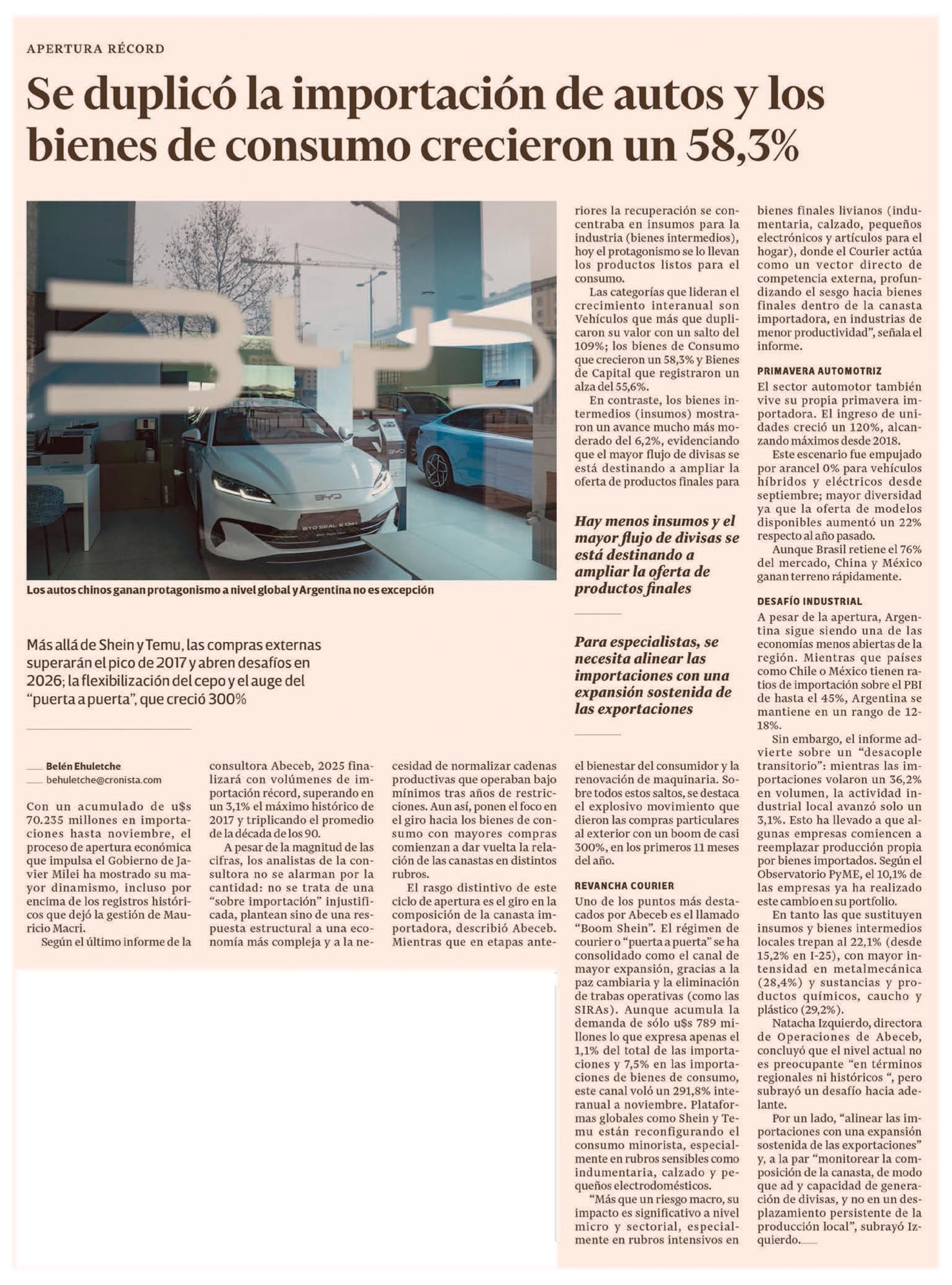 EL CRONISTA – Se duplicó la importación de autos y los bienes de consumo crecieron un 58,3%