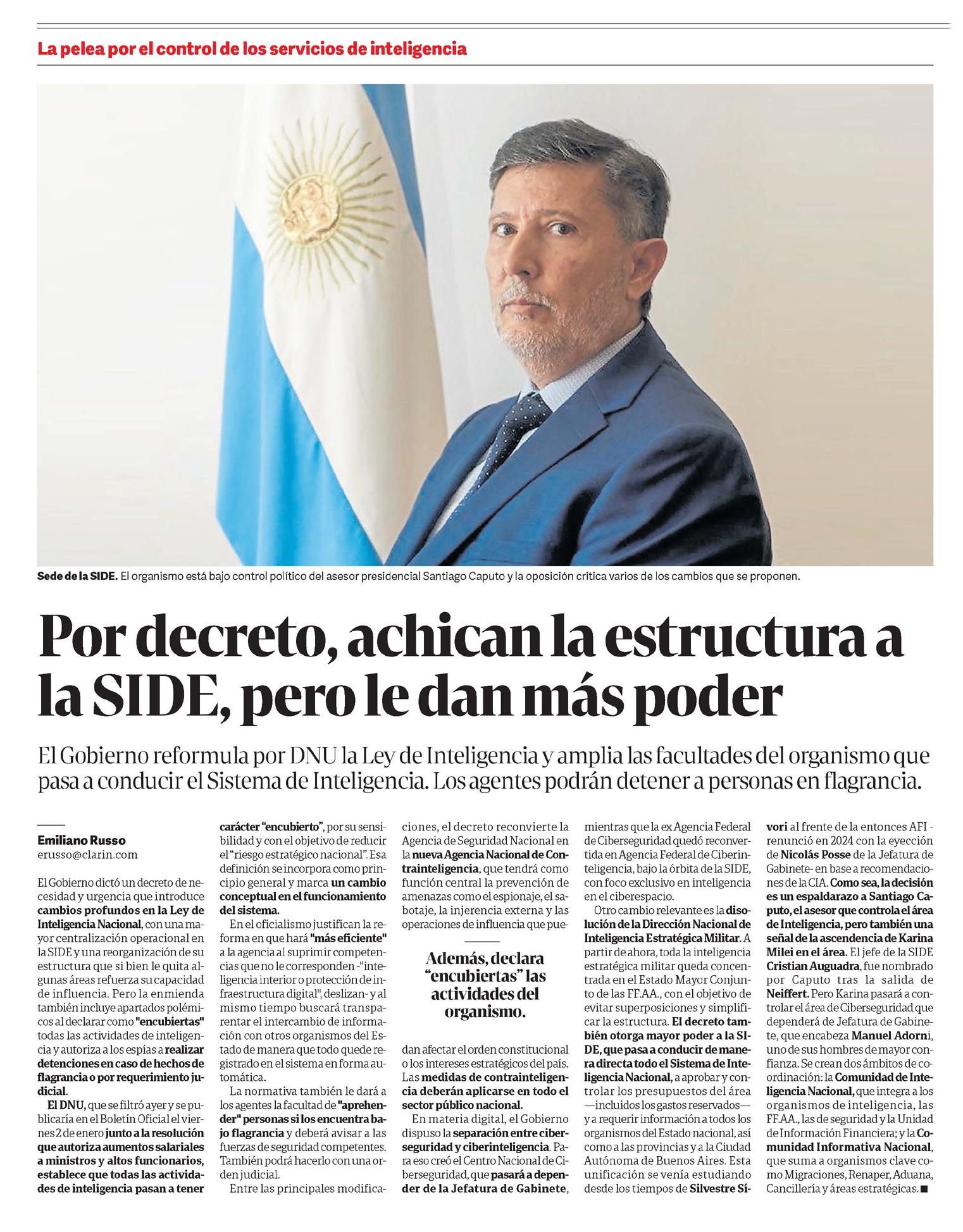 CLARÍN – Por decreto, achican la estructura a la SIDE, pero le dan más poder