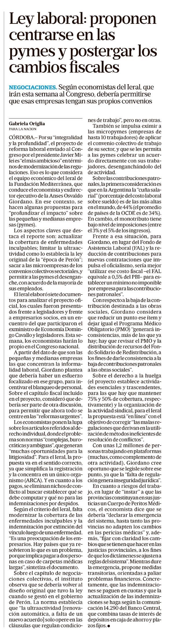 LA NACIÓN – Ley laboral: proponen centrarse en las pymes y postergar los cambios fiscales