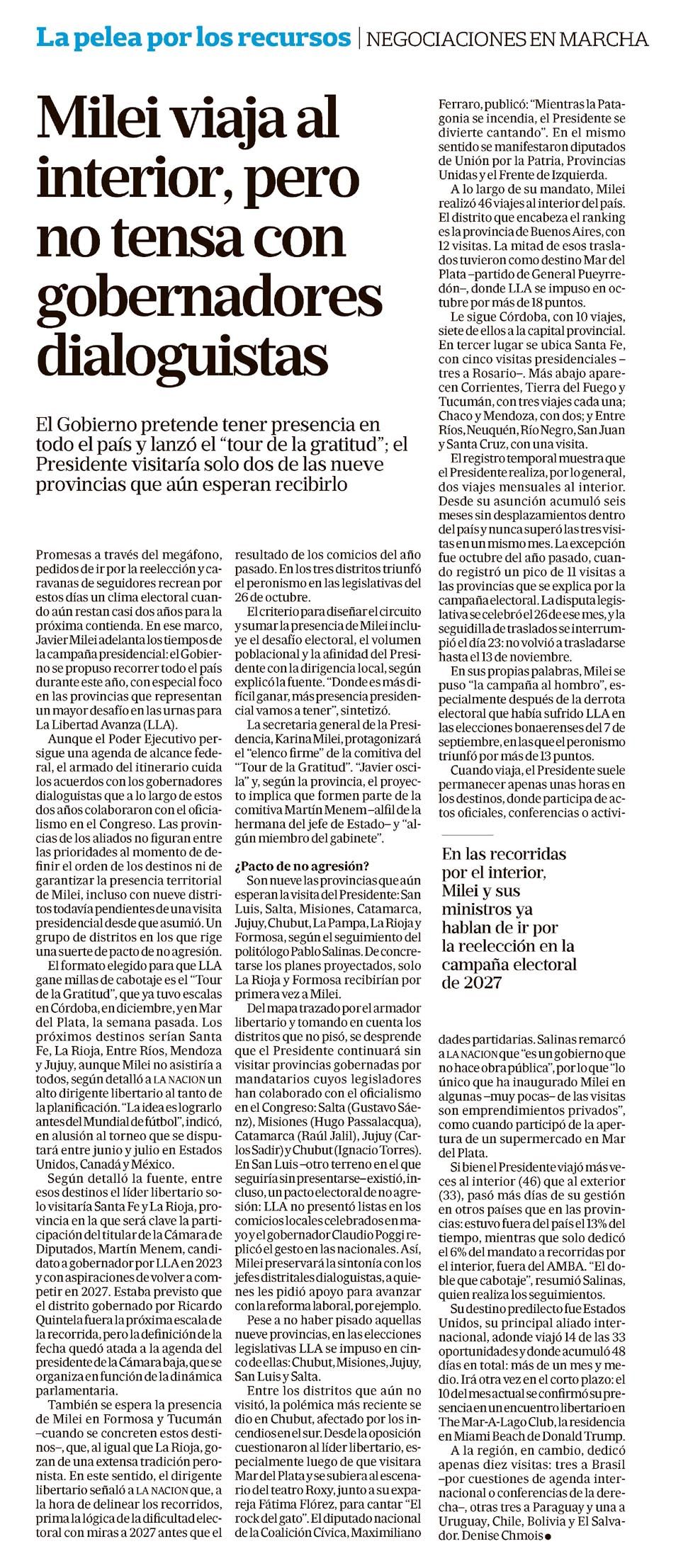 LA NACIÓN – Milei viaja al interior, pero no tensa con gobernadores dialoguistas