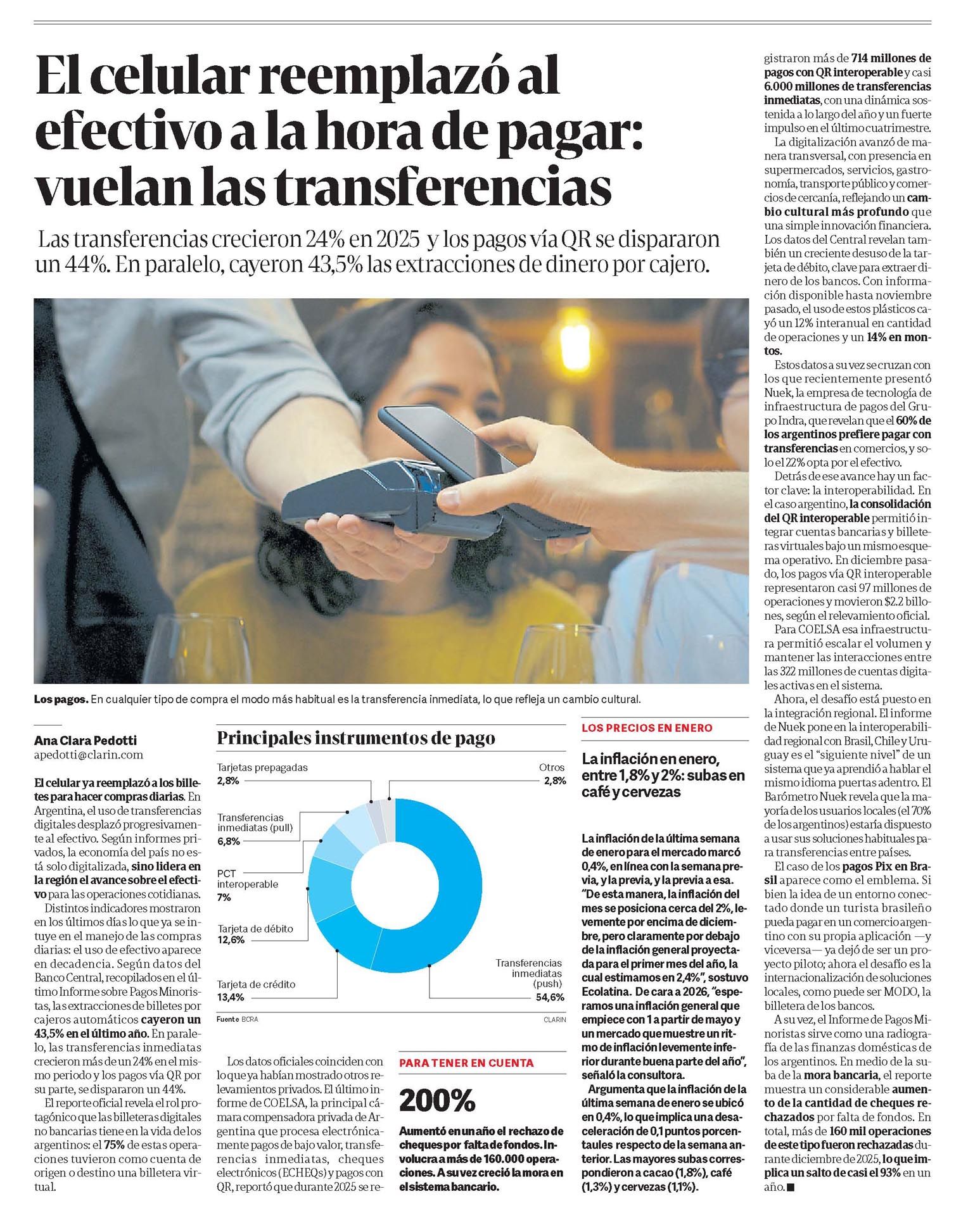 Las transferencias crecieron 24% en 2025 y los pagos vía QR se dispararon un 44%. En paralelo, cayeron 43,5% las extracciones de dinero por cajero.