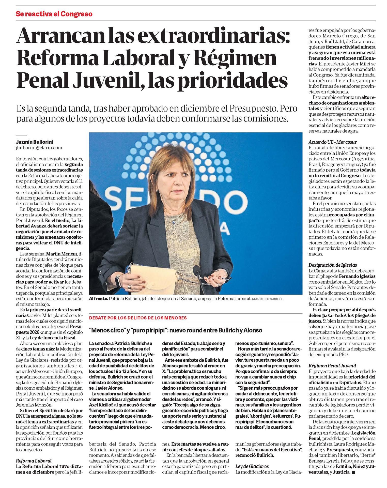 CLARÍN – Arrancan las extraordinarias: Reforma Laboral y Régimen Penal Juvenil, las prioridades