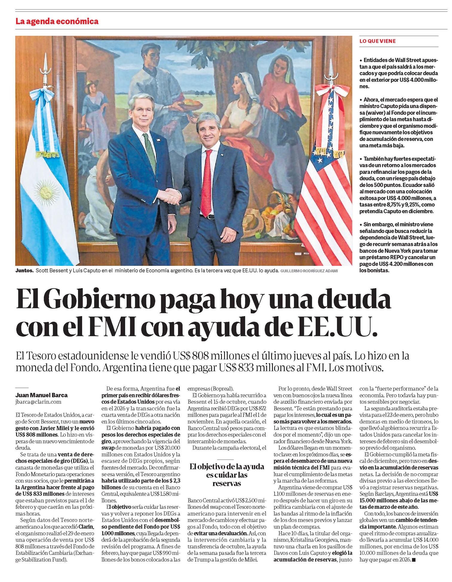 CLARÍN – El Gobierno paga hoy una deuda con el FMI con ayuda de EEUU