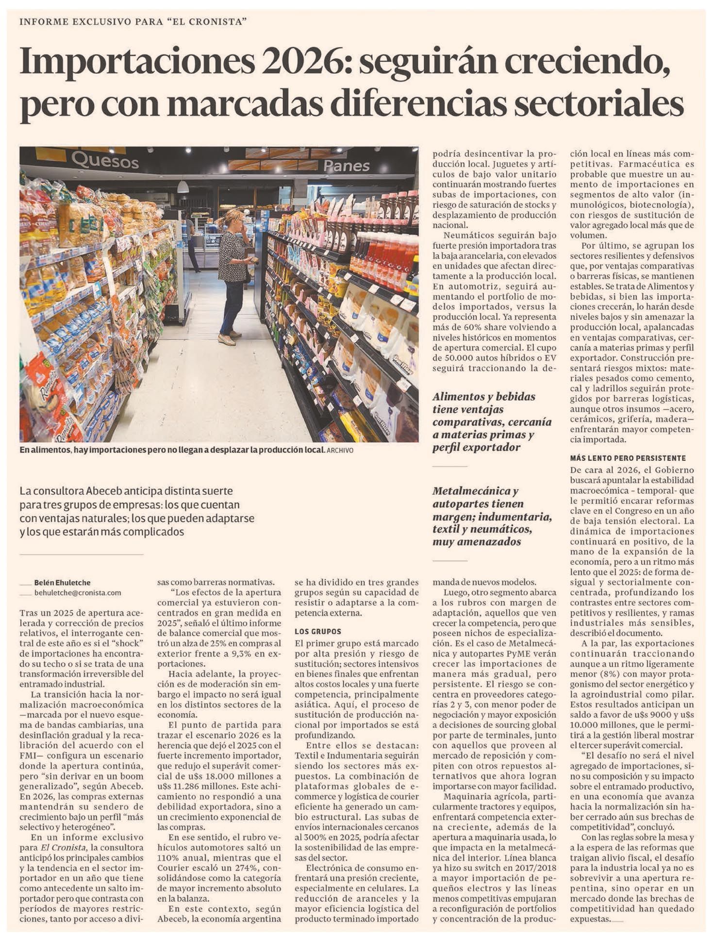 EL CRONISTA – Importaciones 2026: seguirán creciendo, pero con marcadas diferencias sectoriales