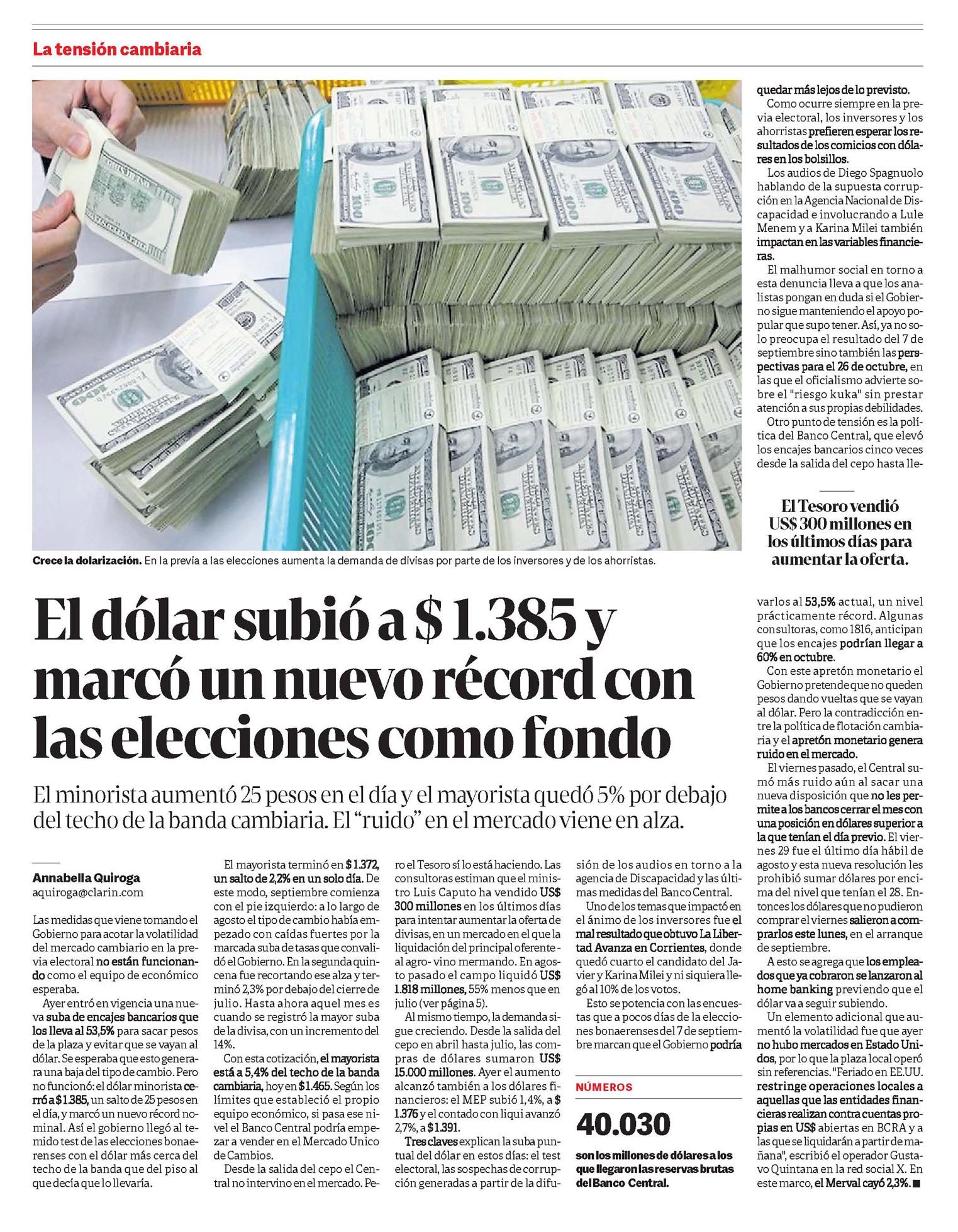 CLARÍN – El dólar subió a $1.385 y marcó un nuevo récord con las elecciones como fondo
