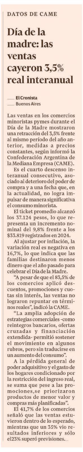EL CRONISTA – Día de la madre: las ventas cayeron 3,5% real interanual