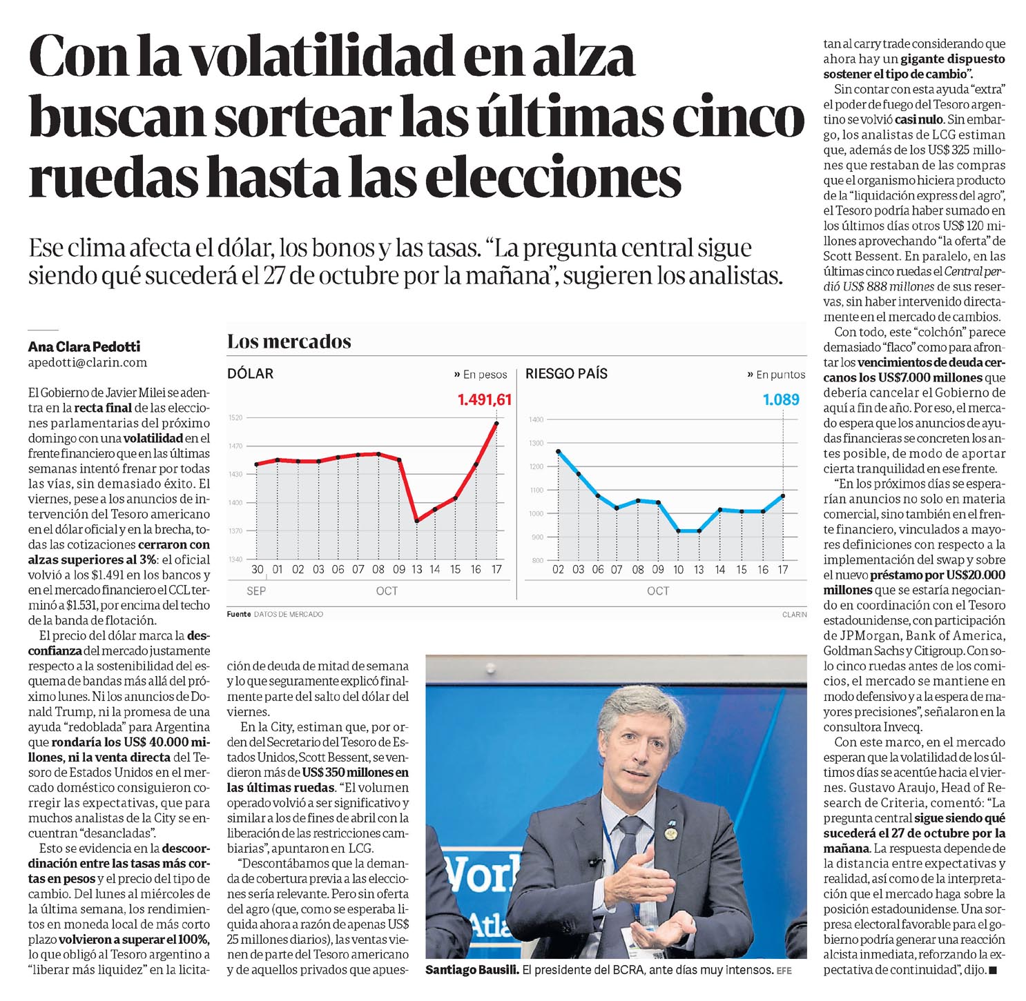 CLARÍN – Con la volatilidad en alza, buscan sortear las últimas cinco ruedas hasta las elecciones