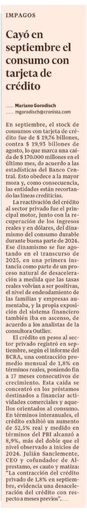 EL CRONISTA – Cayó en septiembre el consumo con tarjeta de crédito