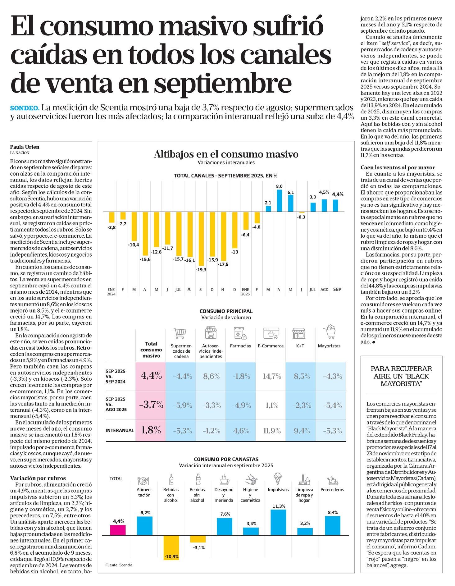 LA NACIÓN – El consumo masivo sufrió caídas en todos los canales de venta en septiembre
