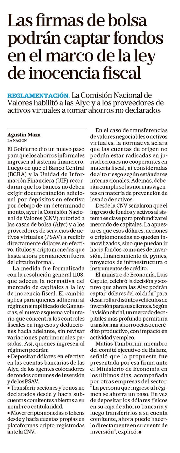 LA NACIÓN – Las firmas de bolsa podrán captar fondos en el marco de la ley de inocencia fiscal