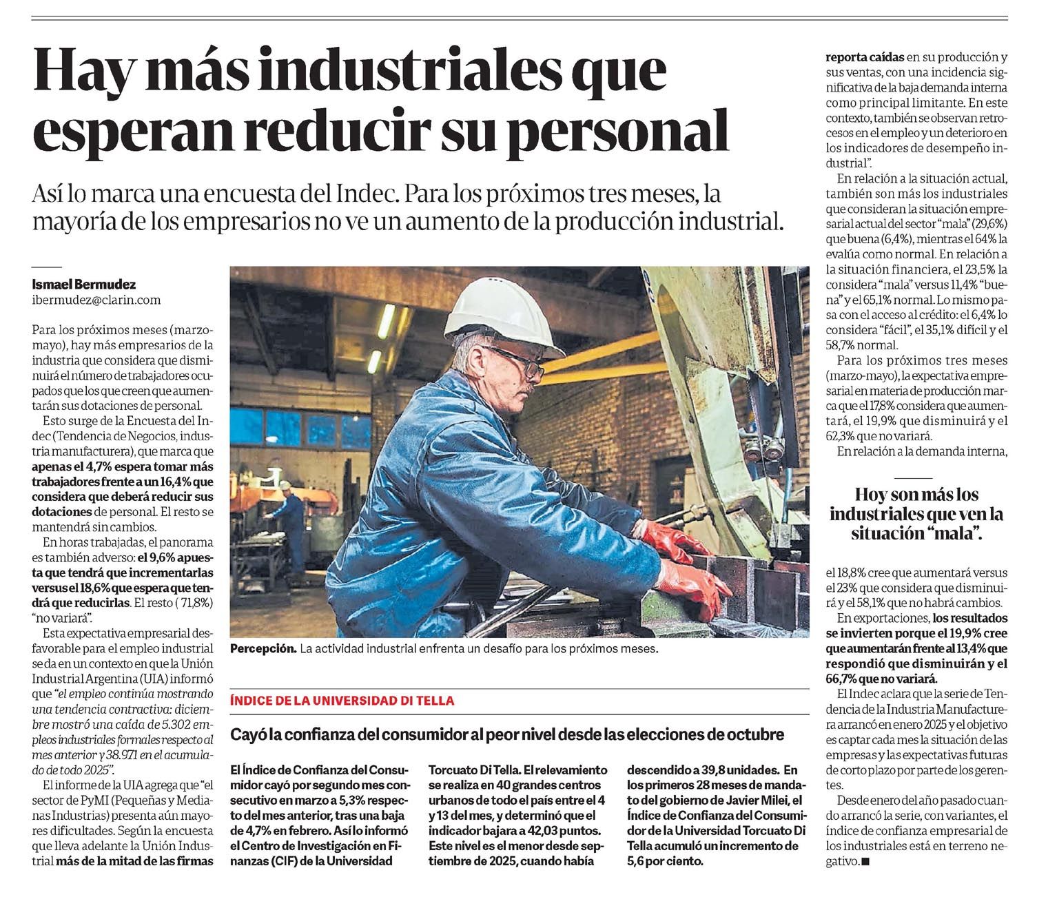 CLARÍN – Hay más industriales que esperan reducir su personal