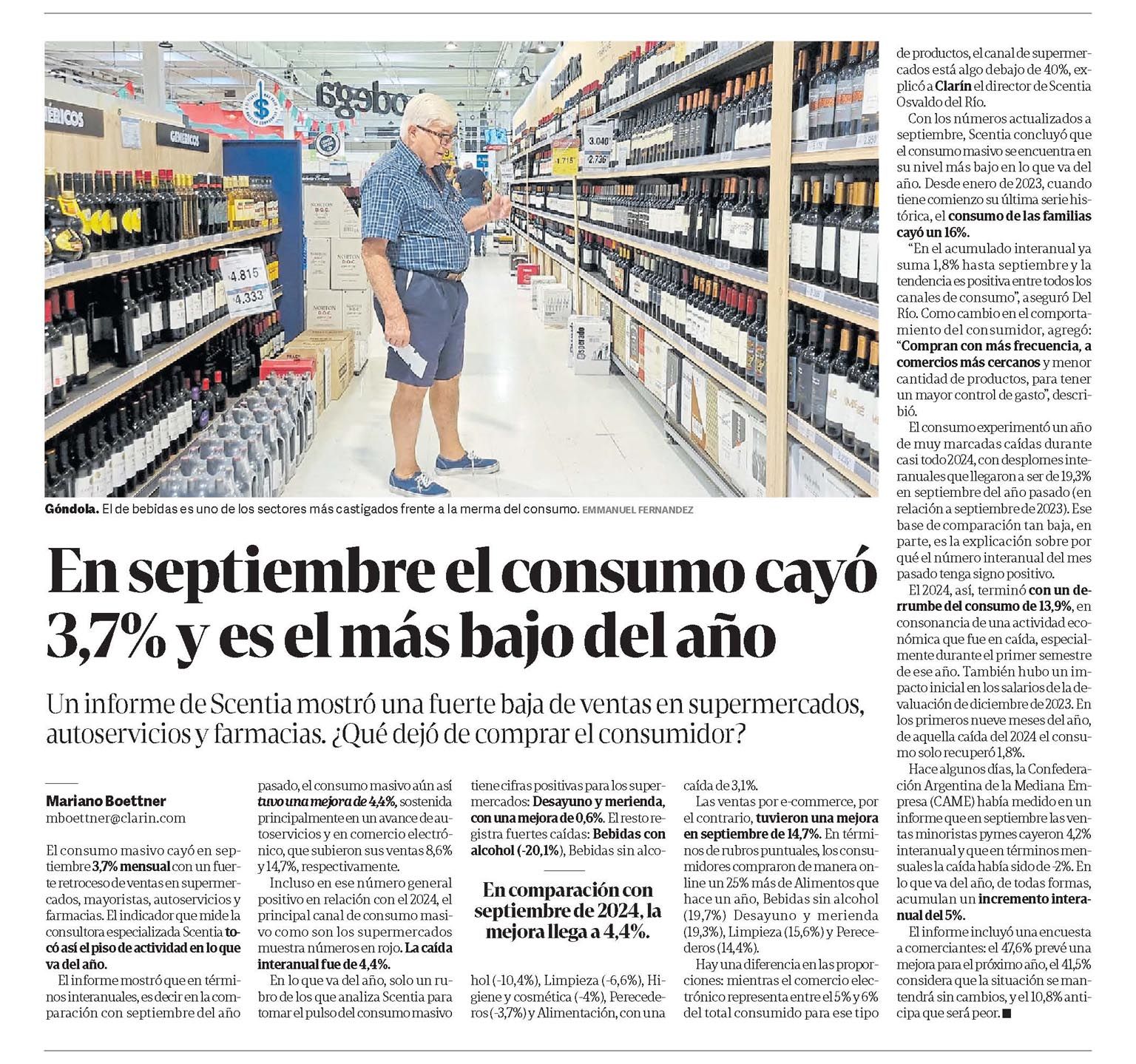 CLARÍN – En septiembre el consumo cayó 3,7% y es el más bajo del año