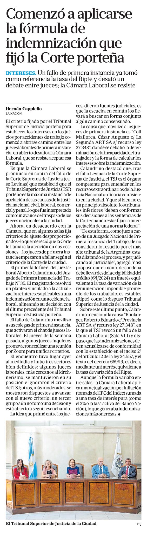 LA NACIÓN – Comenzó a aplicarse la fórmula de indemnización que fijó la Corte porteña