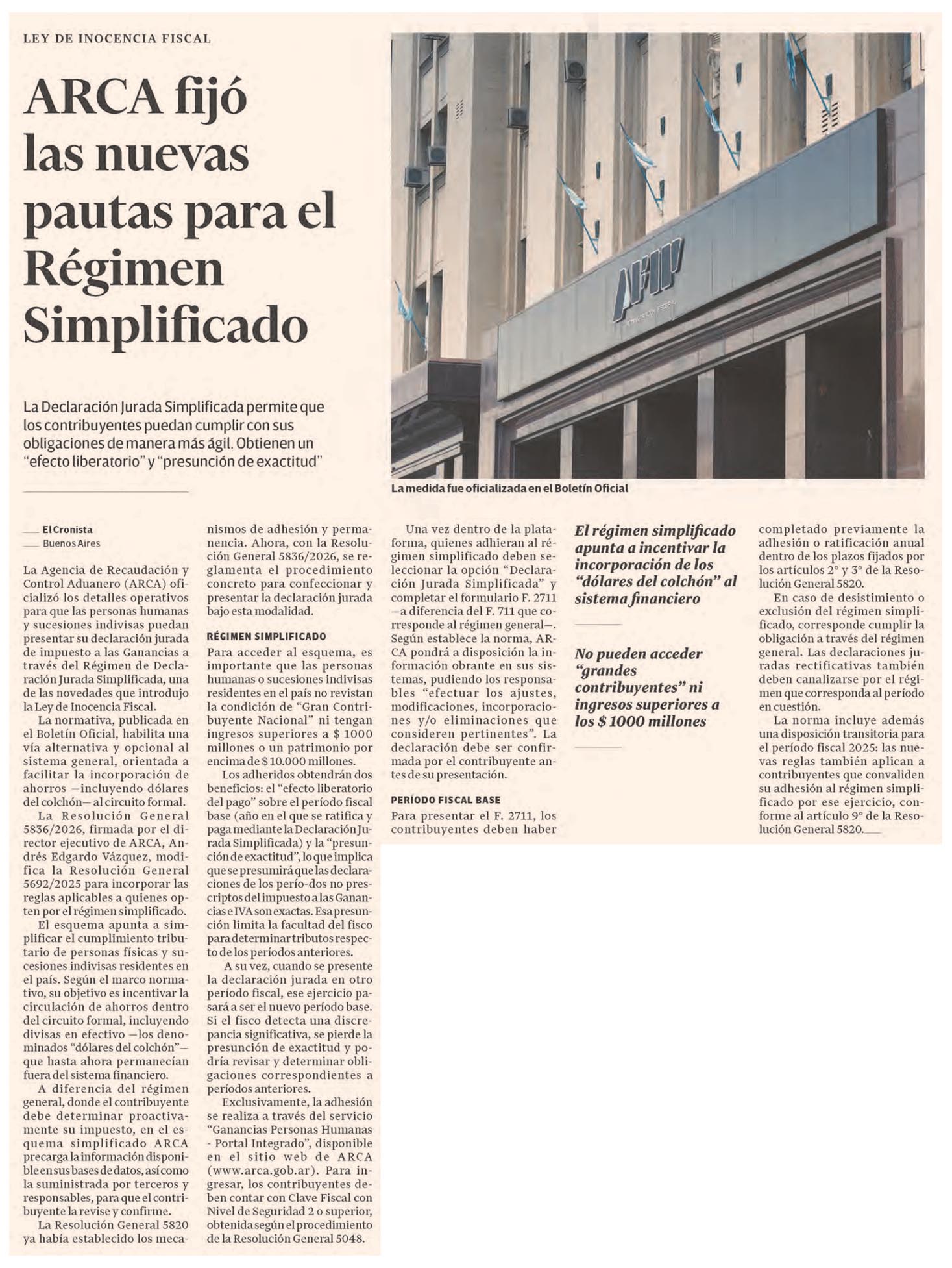 EL CRONISTA – ARCA fijó las nuevas pautas para el Régimen Simplificado