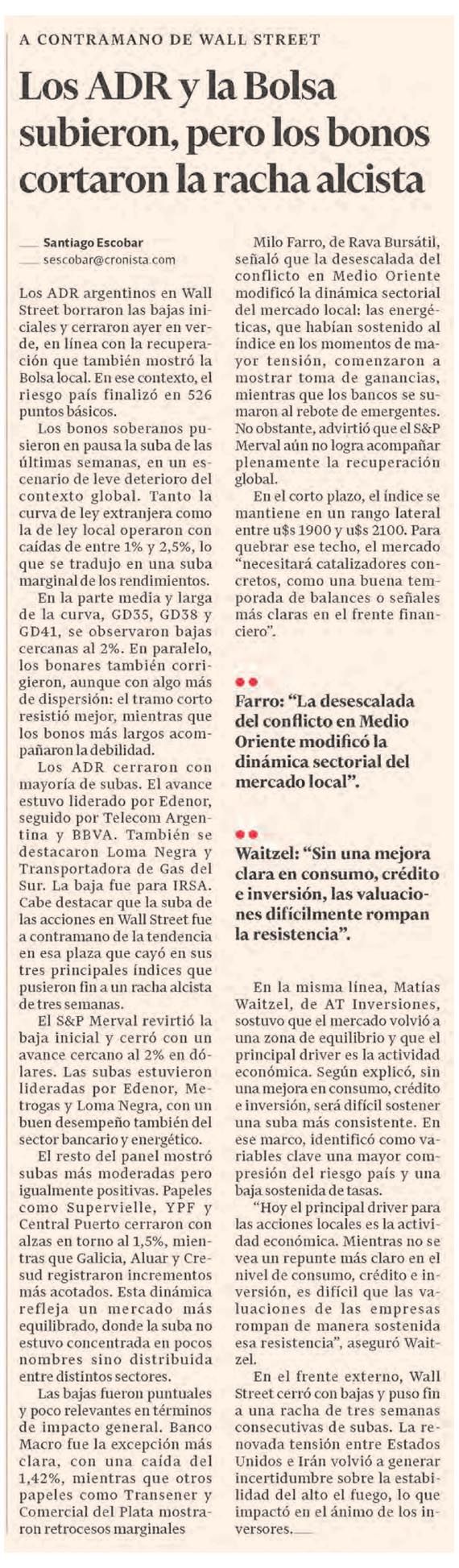 EL CRONISTA – Los ADR y la Bolsa subieron, pero los bonos cortaron la racha alcista