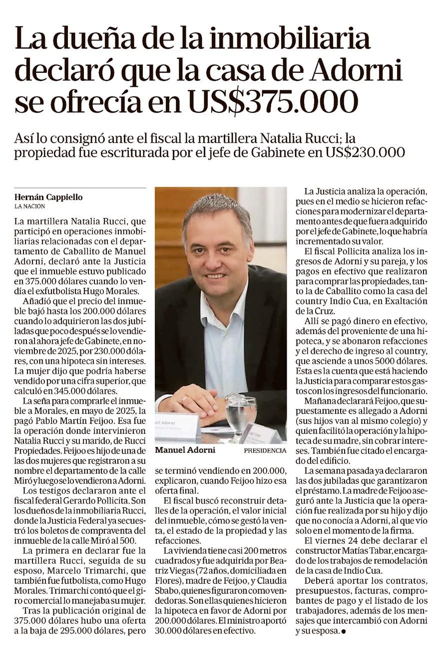 LA NACIÓN – La dueña de la inmobiliaria declaró que la casa de Adorni se ofrecía en US$375.000