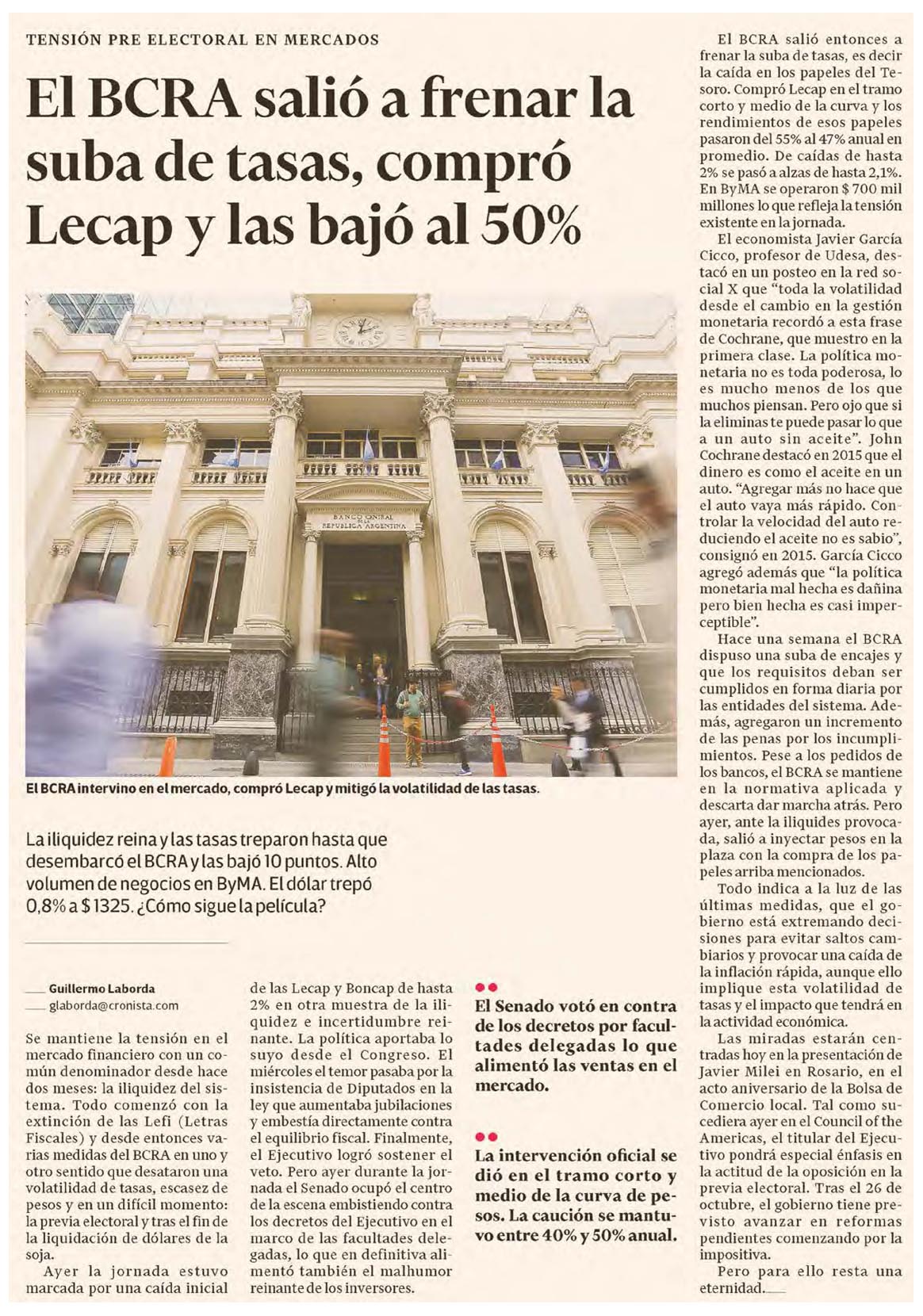 EL CRONISTA – El BCRA salió a frenar la suba de tasas, compró Lecap y las bajó al 50%