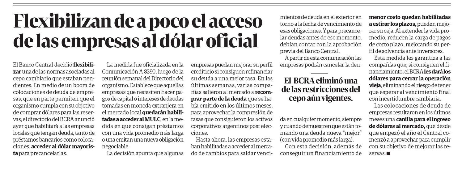 CLARÍN – Flexibilizan de a poco el acceso de las empresas al dólar oficial