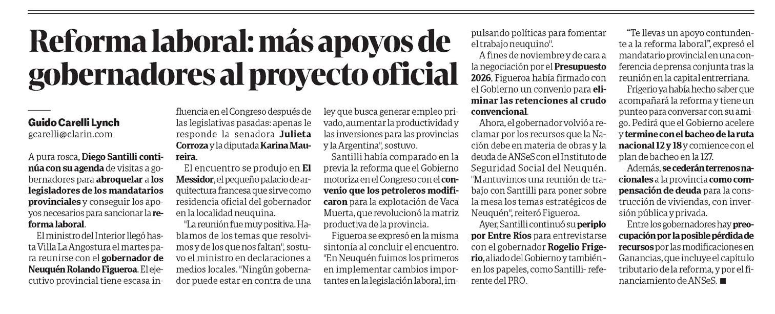 CLARÍN – Reforma laboral: más apoyos de gobernadores al proyecto oficial