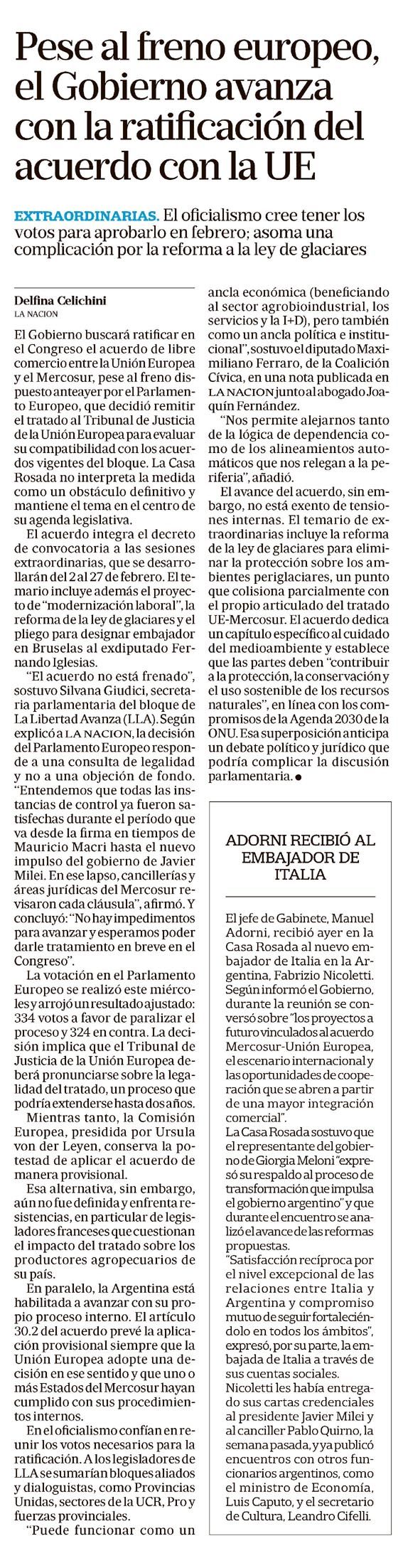 LA NACIÓN – Pese al freno europeo, el Gobierno avanza con la ratificación del acuerdo con la UE
