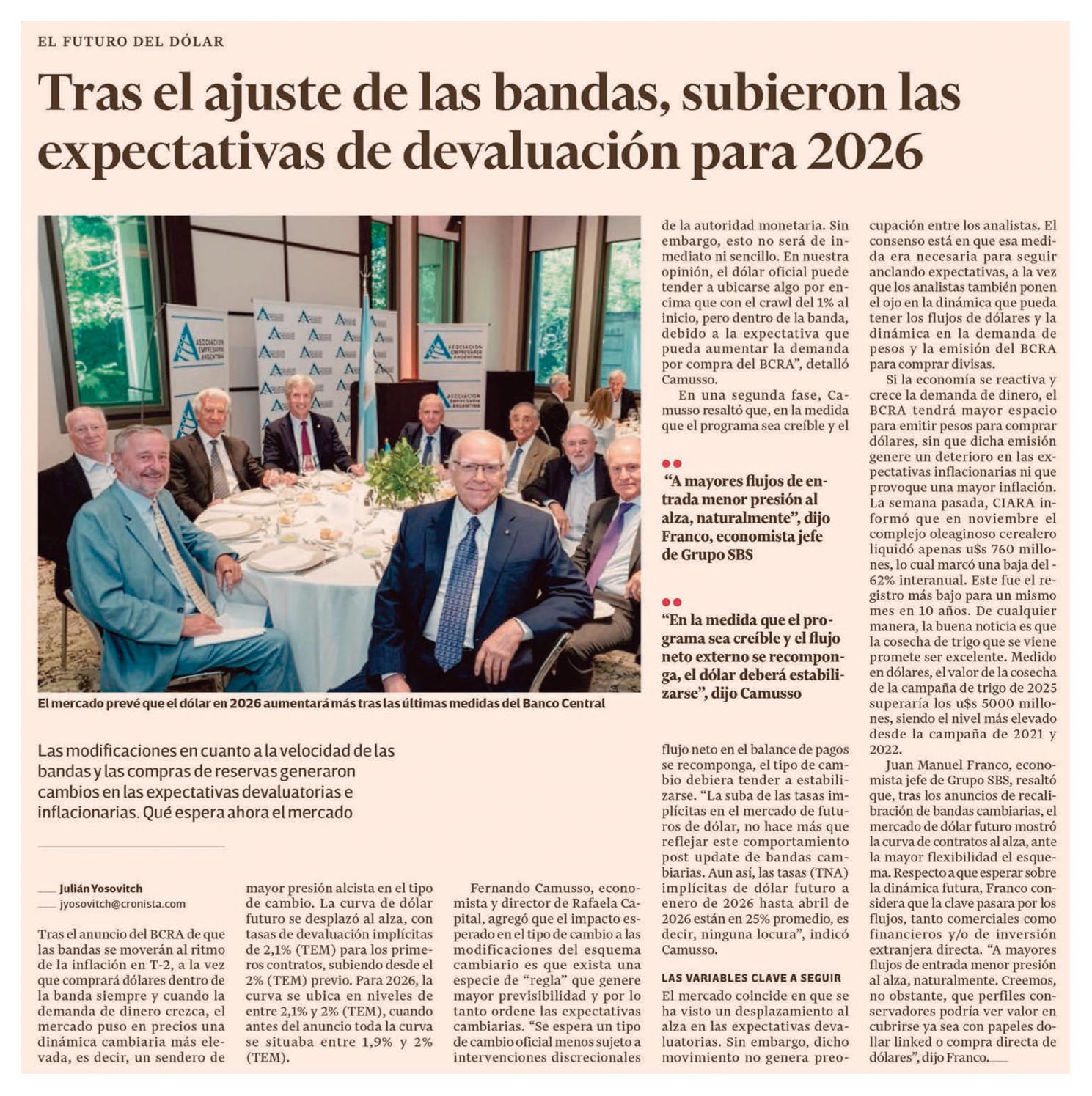 EL CRONISTA – Tras el ajuste de las bandas, subieron las expectativas de devaluación para 2026