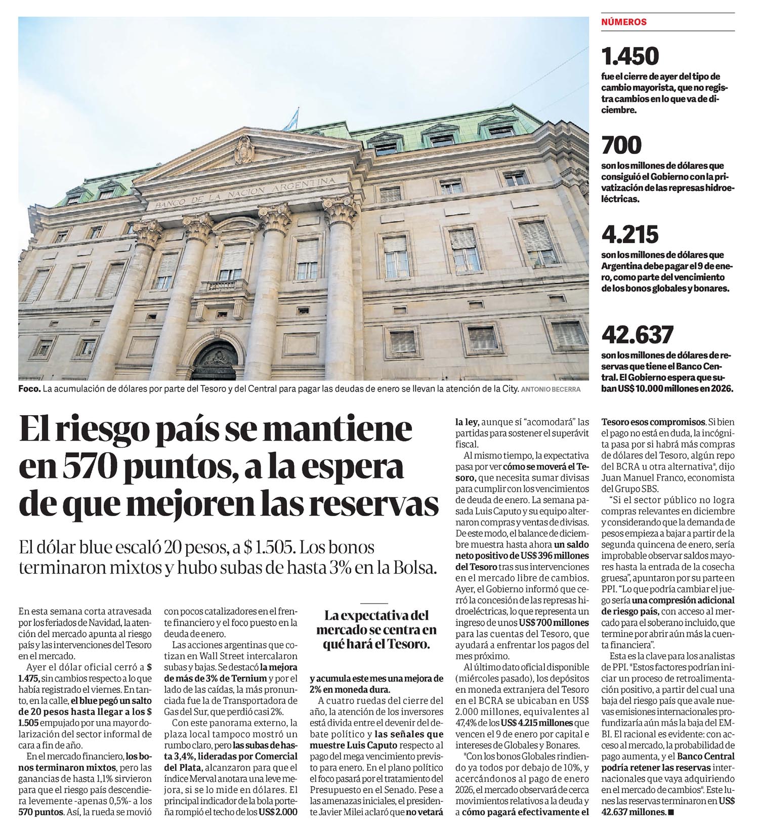 CLARÍN – El riesgo país se mantiene en 570 puntos, a la espera de que mejoren las reservas