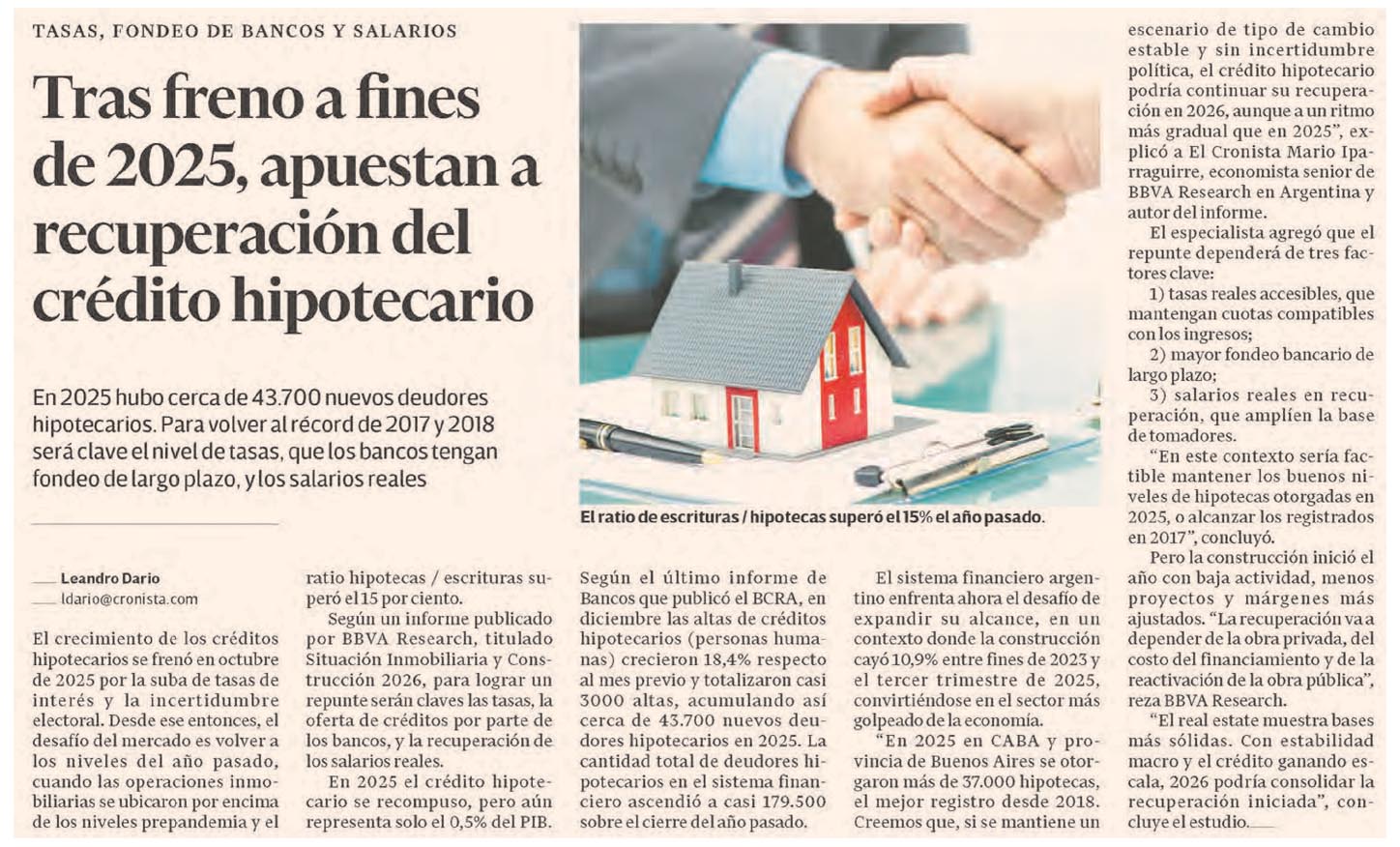 EL CRONISTA – Tras freno a fines de 2025, apuestan a recuperación del crédito hipotecario