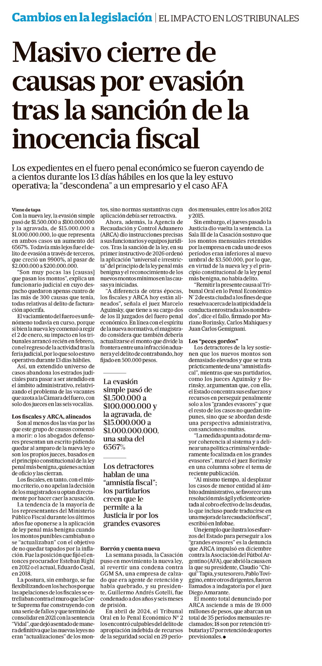 LA NACIÓN – Masivo cierre de causas por evasión a raíz de la ley de inocencia fiscal