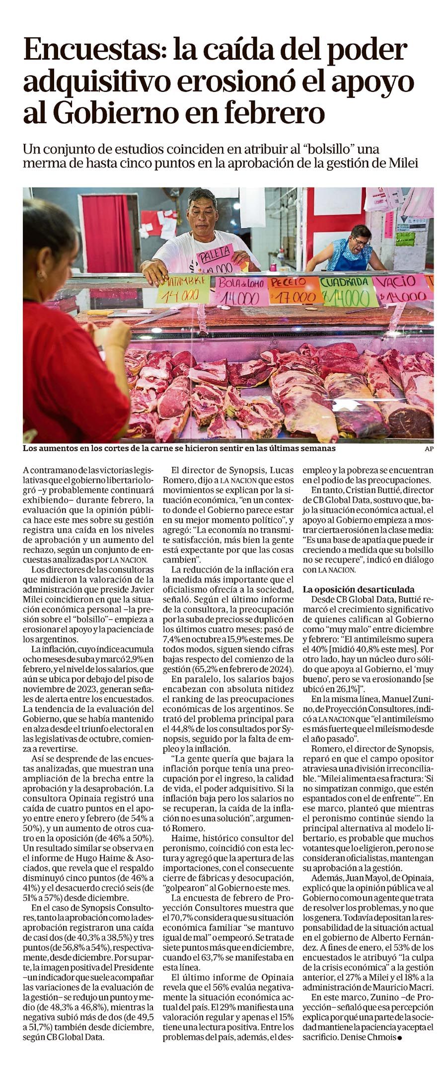 LA NACIÓN – Encuestas: la caída del poder adquisitivo erosionó el apoyo al Gobierno en febrero