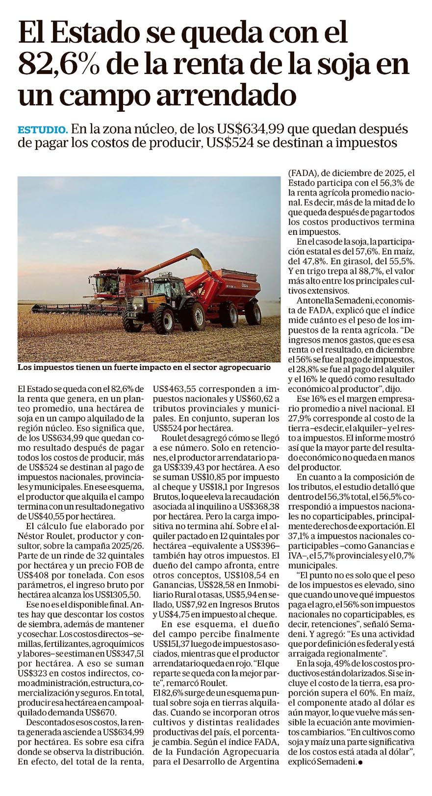 LA NACIÓN – El Estado se queda con el 82,6% de la renta de la soja en un campo arrendado