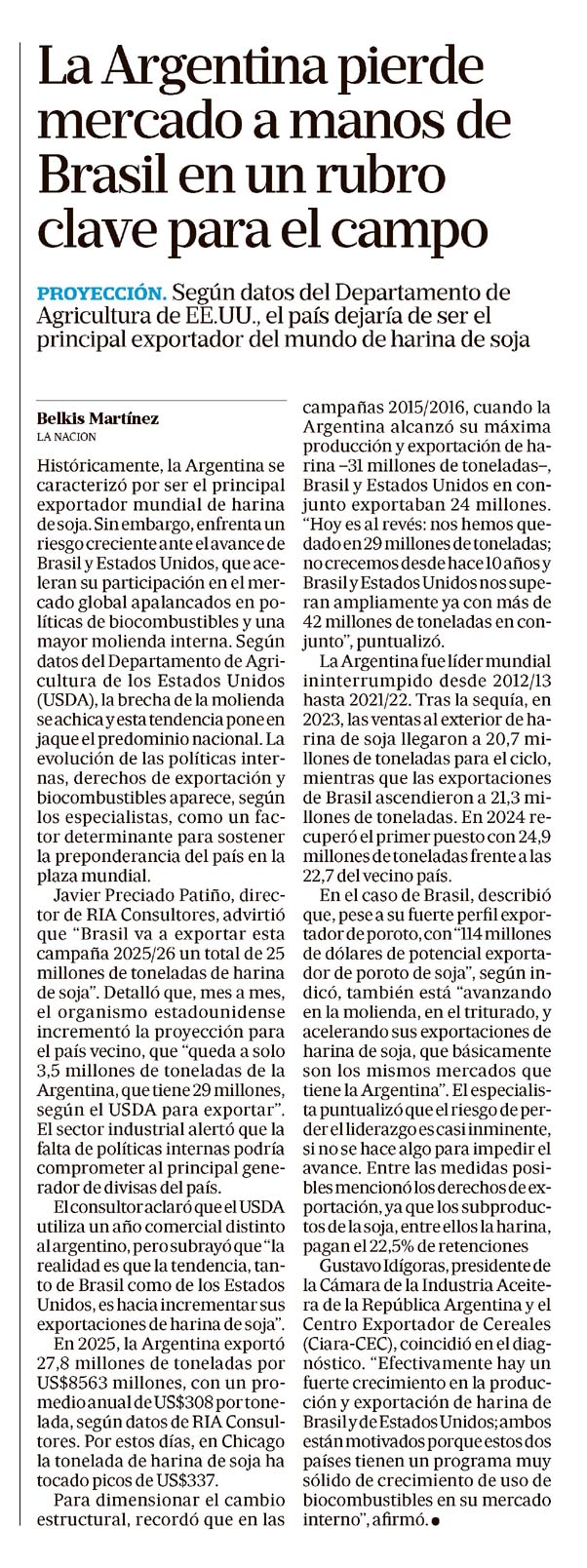 LA NACIÓN -La Argentina pierde mercado a manos de Brasil en un rubro clave para el campo