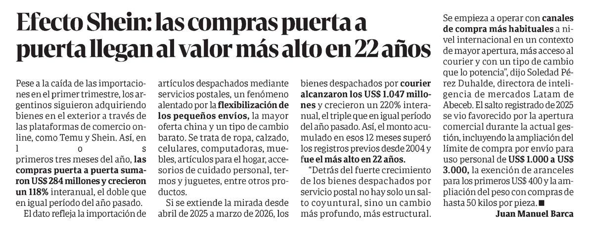 CLARÍN – Efecto Shein: las compras puerta a puerta llegan al valor más alto en 22 años