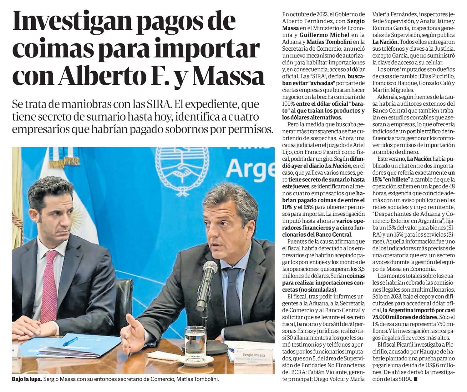 CLARÍN – Investigan pagos de coimas para importar con Alberto F. y Massa
