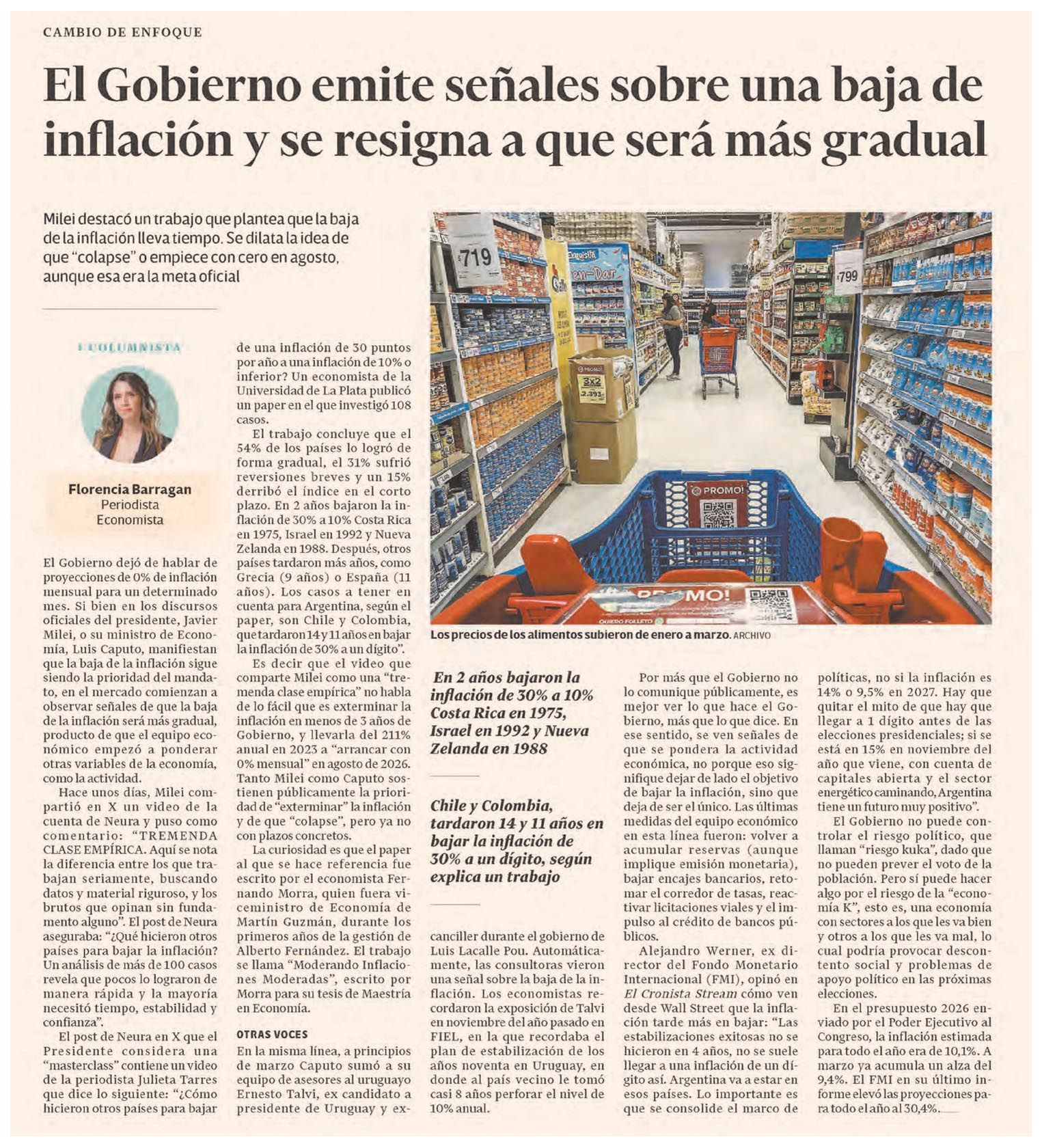 Milei destacó un trabajo que plantea que la baja de la inflación lleva tiempo. Se dilata la idea de que "colapse" o empiece con cero en agosto, aunque esa era la meta oficial
