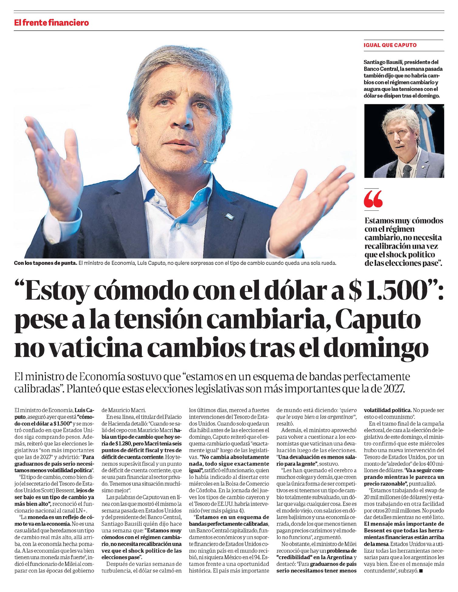 Con los tapones de punta. El ministro de Economía, Luis Caputo, no quiere sorpresas con el tipo de cambio cuando queda una sola rueda.