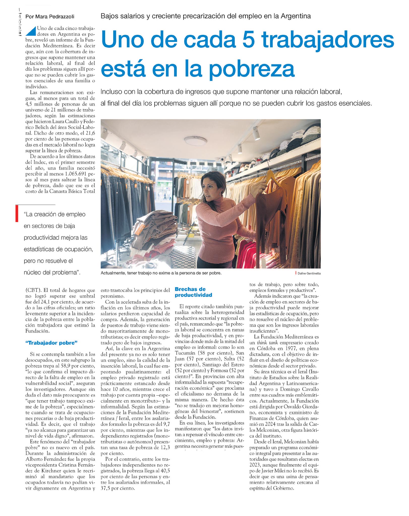 Uno de cada cinco trabajadores en Argentina es pobre, reveló un informe de la Fundación Mediterránea. Es decir que, aún con la cobertura de ingresos que supone mantener una relación laboral, al final del día los problemas siguen allí porque no se pueden cubrir los gastos esenciales de una familia o individuo.
